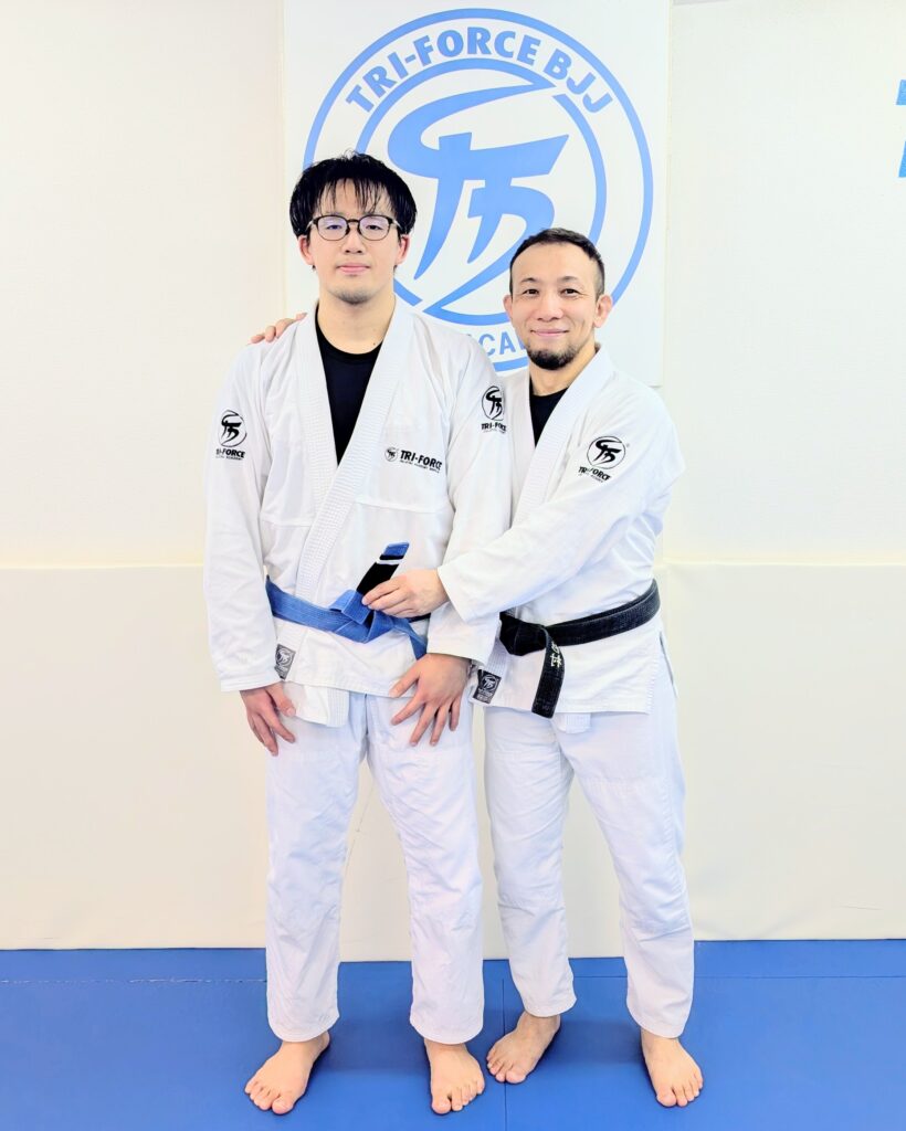 アイダ君に青帯ストライプ1を授与しました!寡黙でガタイが良くてベーシック2級ハイスコアの大学生!成長期です!