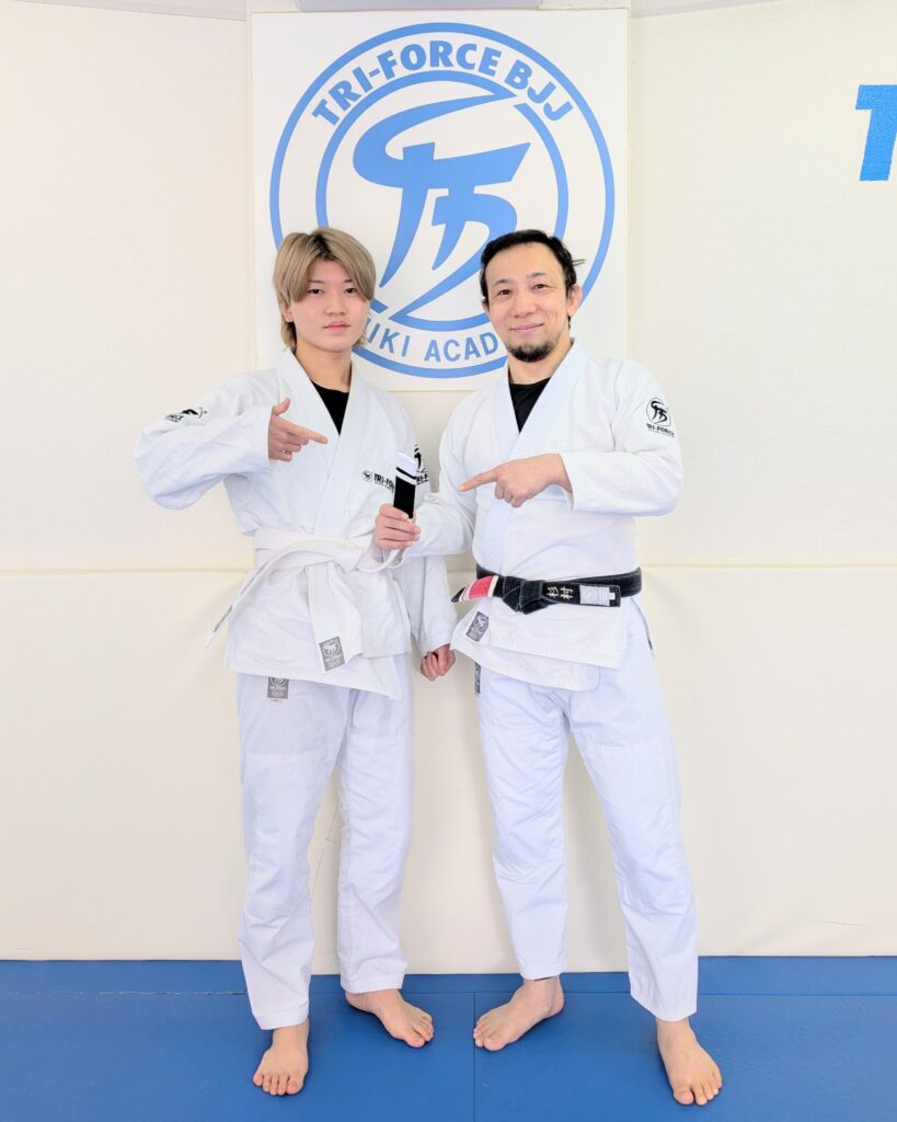 大学生もたくさん通ってくれています!柔術人生最初のストライプを授与です!